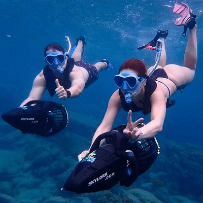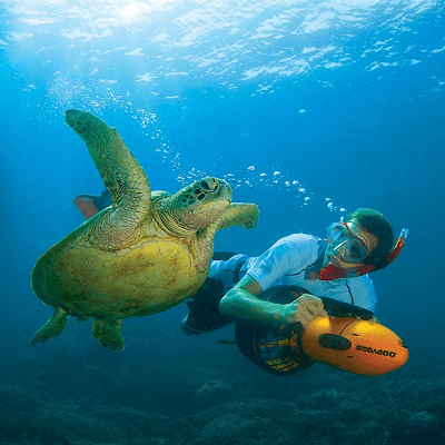 You will get to appreciate the adorable wonders of marine life, and get to see various sea creatures, plants, animals, and organisms that live on the sea. Our advanced safety-conscious underwater scooter is very easy to drive and play with and will guarantee you up to 40 MINUTES of battery life, meaning 40 minutes of fun, play, and water entertainment. A lot of fun, right? Yes, you read right. You can scoot from one point to the other; skidding on top of the beautiful ocean and feeling the pleasure of warm sea waters as well as swim by the side of the Hawaiian green sea turtle. Rest assured, it will be a breathtaking experience.